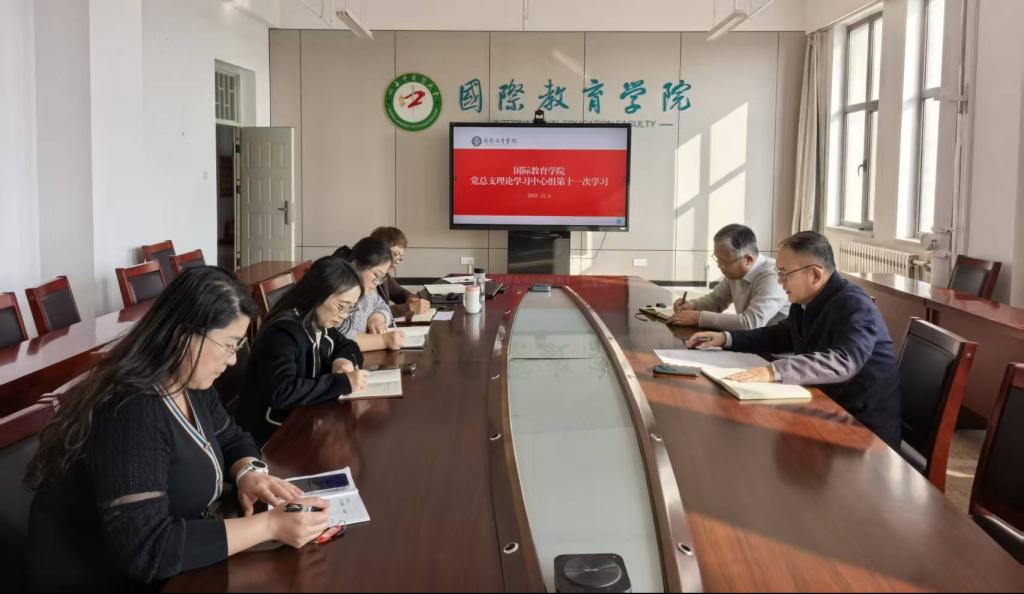 11月3日,国际教育学院党总支召开理论学习中心组第十一次学习会,专题学习贯彻党的二十届四中全会精神。党总支书记孙翠生主持并讲话,理论学习中心组全体成员参加学习。