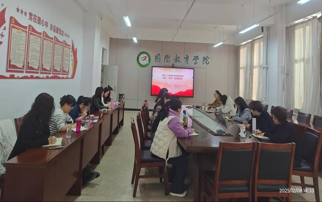 为深入学习贯彻党的二十届四中全会精神,推动全会精神与教育教学工作深度融合,2025年12月8日,马克思主义学院与国际教育学院联合开展“结对赋能”专题学习活动。马克思主义学院贾令岚老师和闫芳老师应邀主讲,国际教育学院全体教师参加学习。
